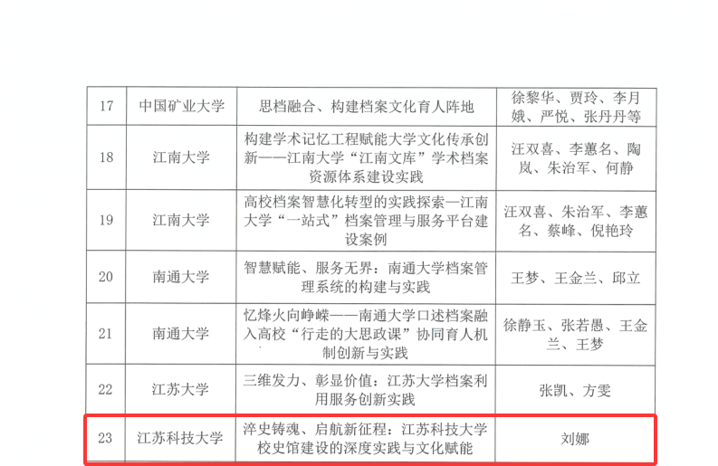 近日,江苏省高校档案研究会2025年度高校档案工作优秀实践案例评选结果正式揭晓。我校凭借《淬史铸魂、启航新征程:江苏科技大学校史馆建设的深度实践与文化赋能》一案,首次斩获“优秀案例”荣誉。此次获奖,是对我校档案工作创新性价值的充分肯定,凸显了档案资源在服务学校文化建设与高质量发展中的重要驱动力。
