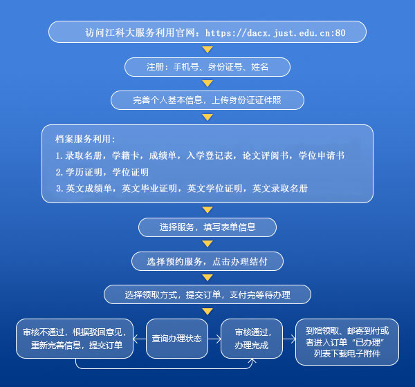 江苏科技大学在校生、毕业生查档、翻译流程图